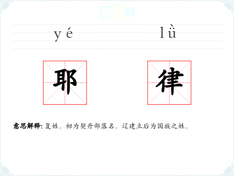 复姓。初为契丹部落名。辽建立后为国族之姓。