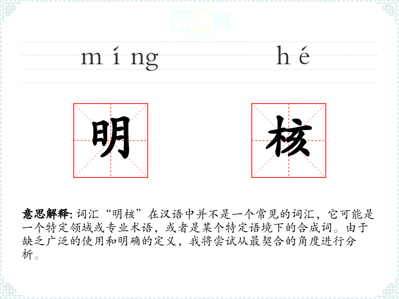 由于“明核”不是一个常用词汇,其词源和演变可能不为人所熟知。它可能是由“明”和“核”两个常用词汇组合而成,用于描述某个特定概念。