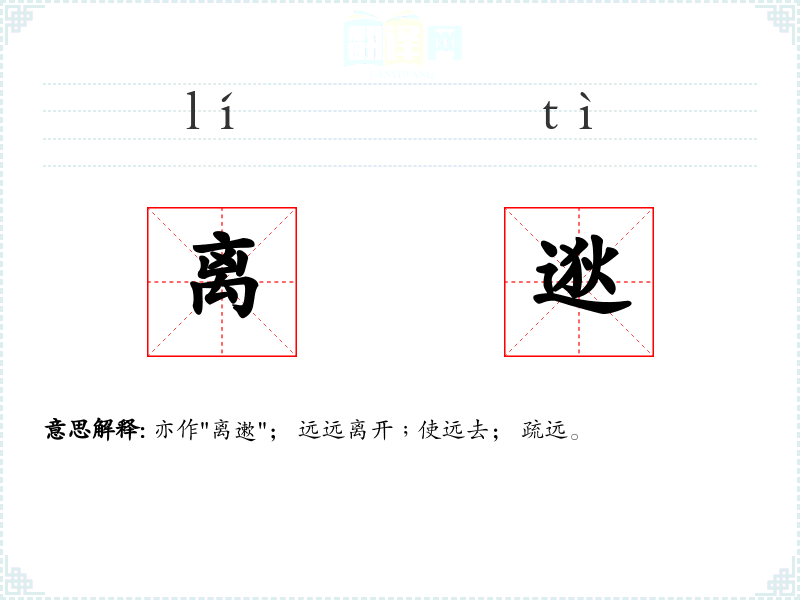 亦作"离遬"; 远远离开﹔使远去; 疏远。