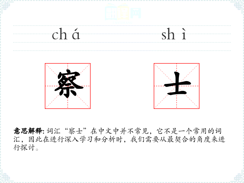 词汇“察士”在中文中并不常见,它不是一个常用的词汇,因此在进行深入学*和分析时,我们需要从最契合的角度来进行探讨。