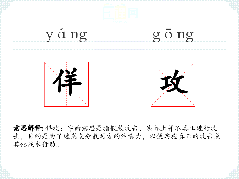 “佯攻”一词源自汉语,由“佯”(假装)和“攻”(攻击)组成。在古代兵法中已有应用,随着时间的推移,其应用范围扩展到现代的各种策略和战术中。