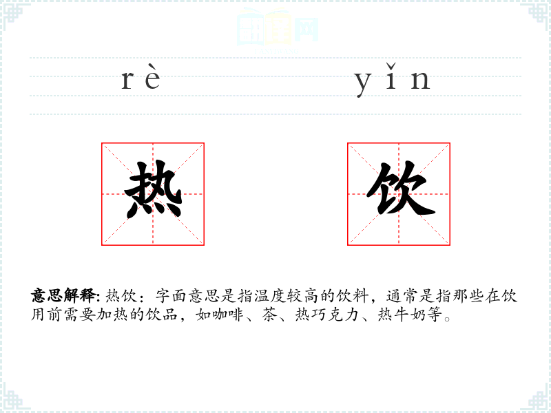 - 反义词:冷饮、冰饮、凉茶