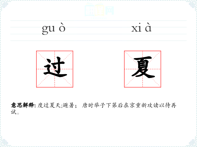 度过夏天;避暑; 唐时举子下第后在京重新攻读以待再试。