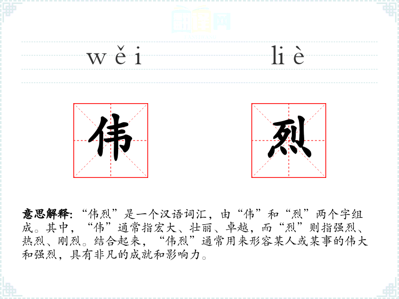 在个人经历中,我曾在阅读历史书籍时遇到“伟烈”这个词,它让我对那些为国家和民族做出巨大牺牲的英雄们产生了深深的敬意。