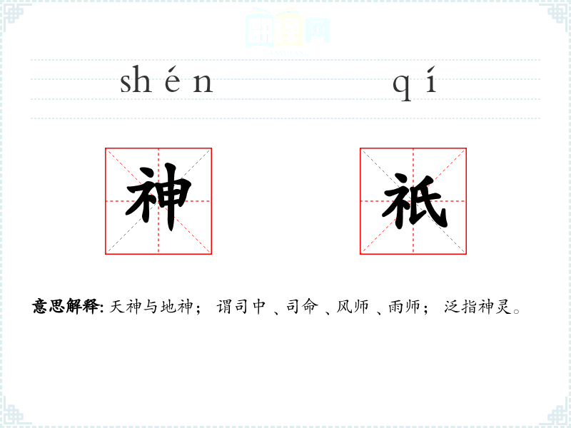 天神与地神; 谓司中﹑司命﹑风师﹑雨师; 泛指神灵。