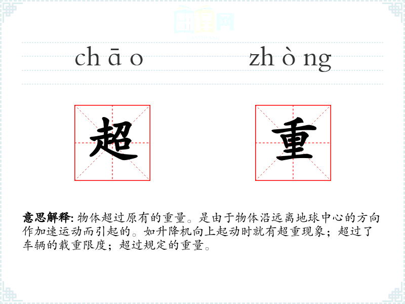 "超重"的意思解释、超重是什么意思由翻译网汉语词典查词提供。