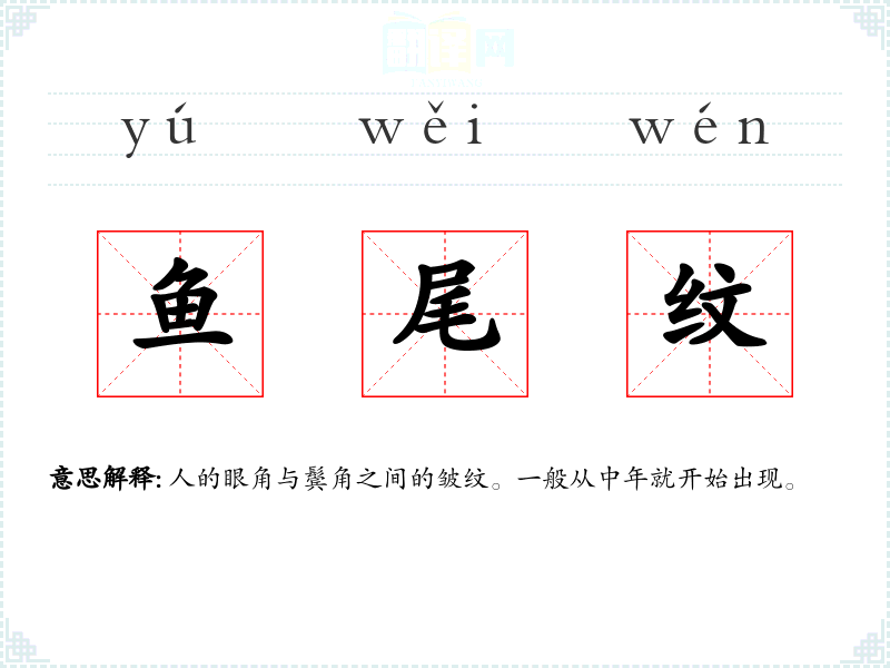 人的眼角与鬓角之间的皱纹。一般从中年就开始出现。