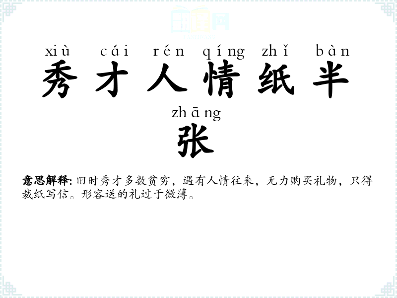 秀才人情纸半张的分字解释