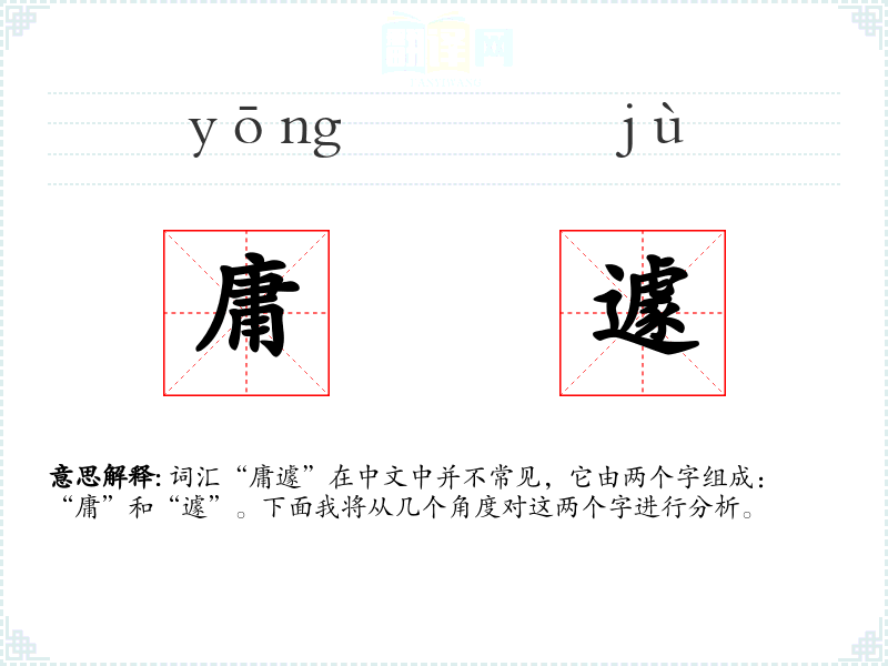 - 在英语中,“庸”可以对应“common”或“ordinary”,“遽”可以对应“sudden”或“abrupt”。
