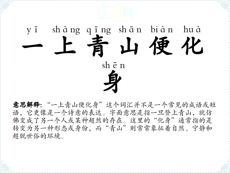 - yī shàng qīng shān biàn huà shēn一上青山便化身
