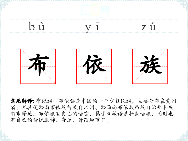 同义词:布依人(指布依族的成员) 反义词:(指的主体民族,与布依族相对)