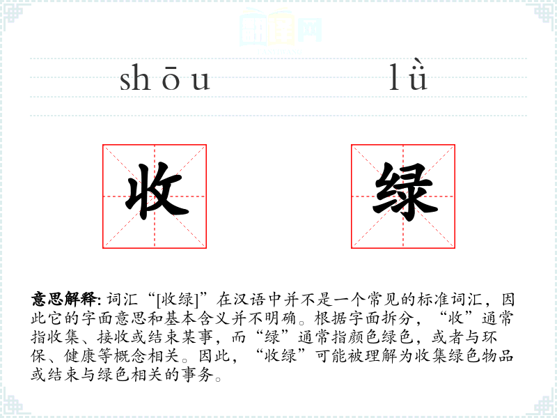 - 反义词:(由于“收绿”不是一个常用词汇,反义词可能不明确)
