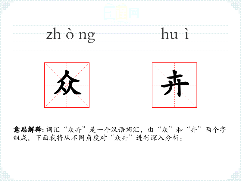 - “众”字在古代汉语中就有“多”的意思,而“卉”字则一直指代草本植物。