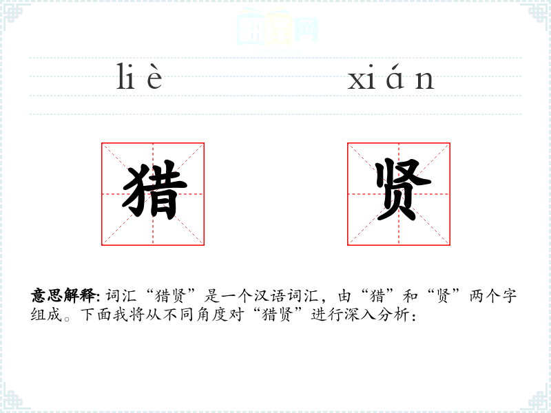 词汇“猎贤”是一个汉语词汇,由“猎”和“贤”两个字组成。下面我将从不同角度对“猎贤”进行深入分析: