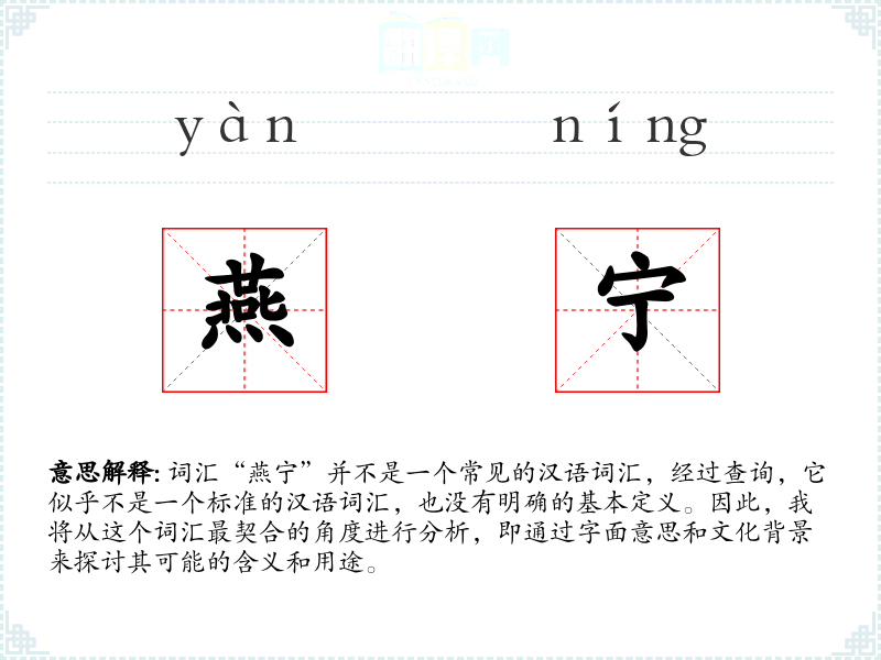 由于“燕宁”不是一个标准词汇,它的词源和演变无从考证。