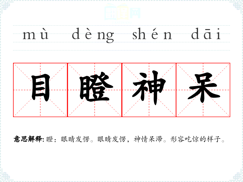 瞪:眼睛发愣。眼睛发愣,神情呆滞。形容吃惊的样子。