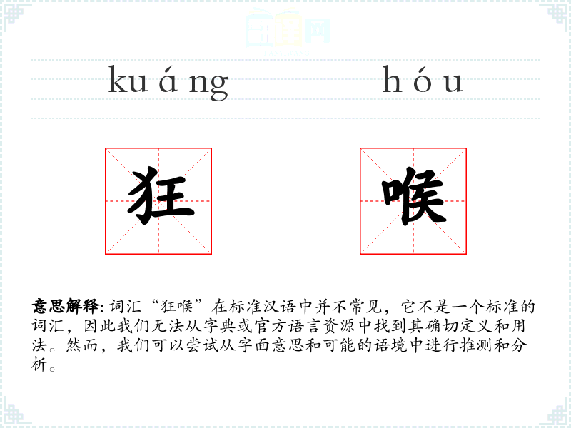 由于“狂喉”不是一个标准词汇,它在不同语言或文化中的对应词汇可能不存在。