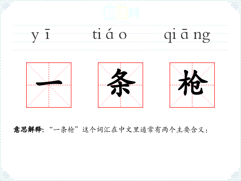 "一条枪"的意思解释、一条枪是什么意思由翻译网汉语词典查词提供。