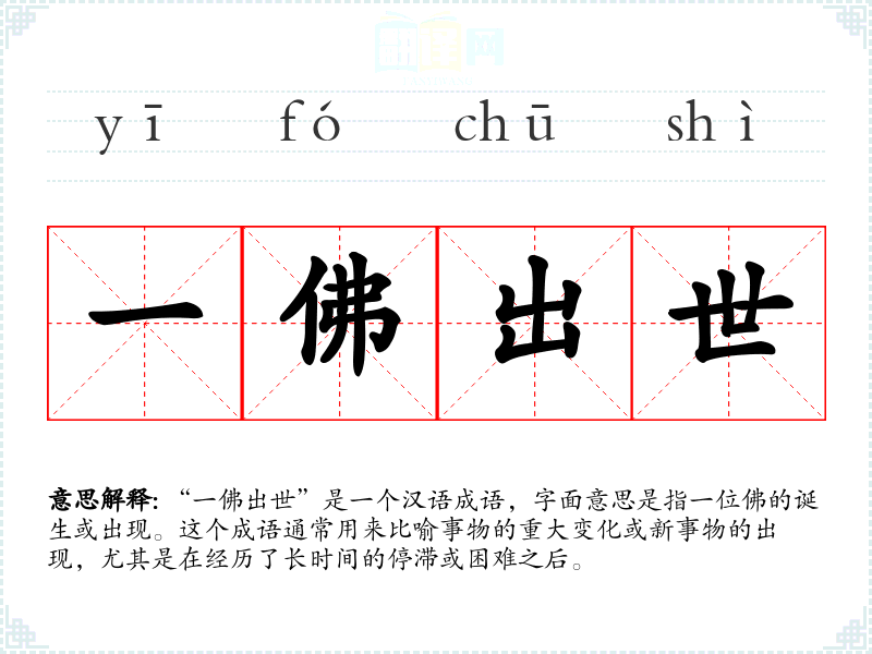 “一佛出世”这个成语源自**文化,原指佛陀的诞生或出现,后来被引申为比喻意义,用来形容任何重大或显著的变化。