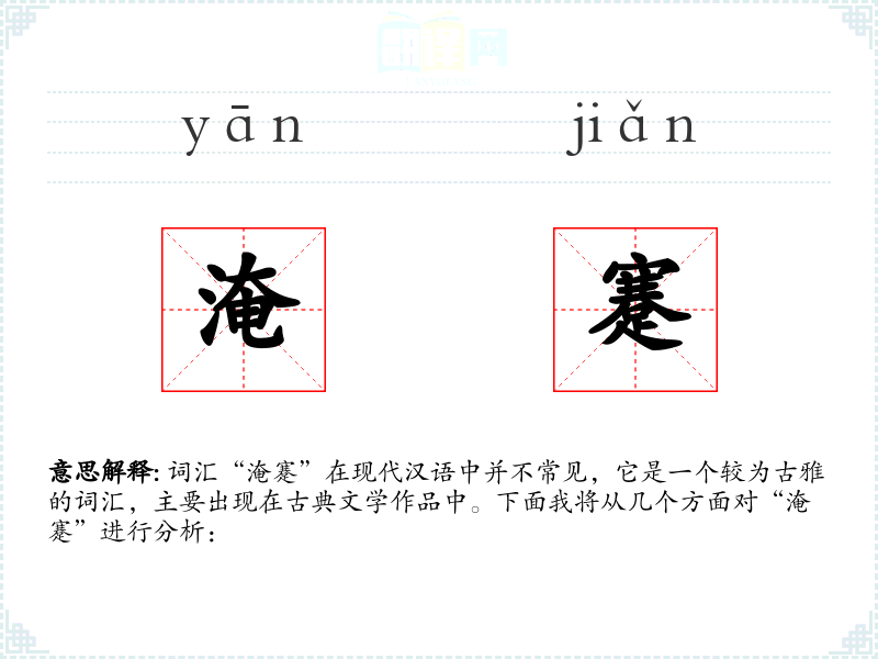 “淹蹇”作为一个古雅的词汇,虽然在现代汉语中使用不多,但它能够丰富语言的表达,增加文学作品的情感深度。在学*语言和文学时,了解这样的词汇有助于更好地理解古代文化和文学作品。