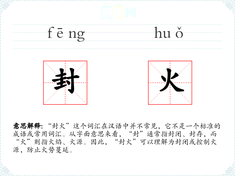 "封火"的意思解释、封火是什么意思由翻译网汉语词典查词提供。