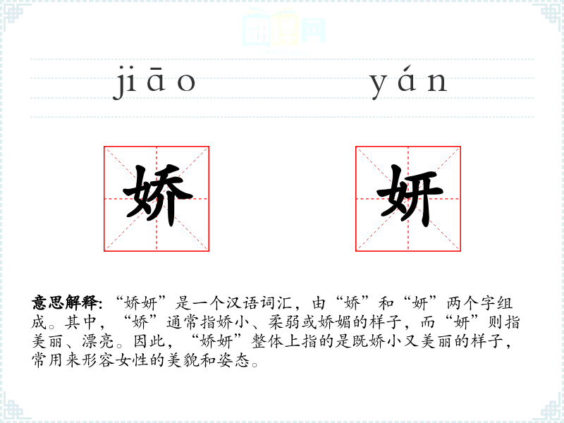 在英语中,类似的词汇可能是“delicate and beautiful”,但“娇妍”这个词更具有**文化的特色,强调了女性的娇小和美丽。