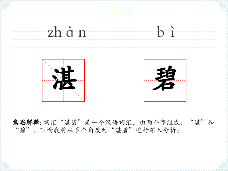 - 词源:“湛”和“碧”都是古代汉语词汇,历史悠久。