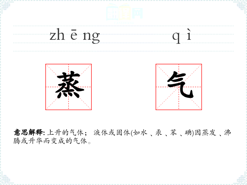 上升的气体; 液体或固体(如水﹑汞﹑苯﹑碘)因蒸发﹑沸腾或升华而变成的气体。