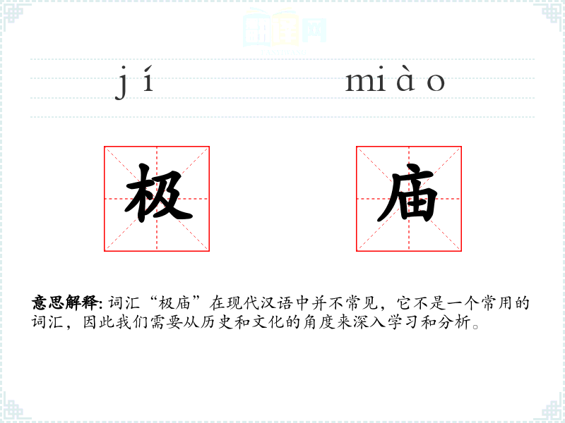 词汇“极庙”在现代汉语中并不常见,它不是一个常用的词汇,因此我们需要从历史和文化的角度来深入学*和分析。