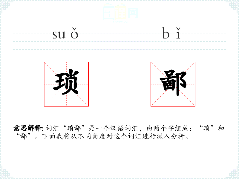 词汇“琐鄙”是一个汉语词汇,由两个字组成:“琐”和“鄙”。下面我将从不同角度对这个词汇进行深入分析。