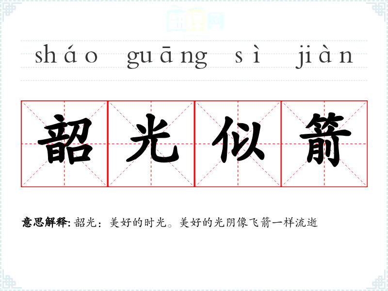 韶光:美好的时光。美好的光阴像飞箭一样流逝