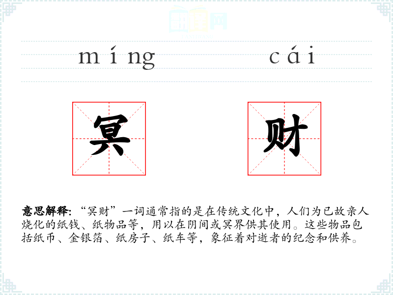 "冥财"的意思解释、冥财是什么意思由翻译网汉语词典查词提供。