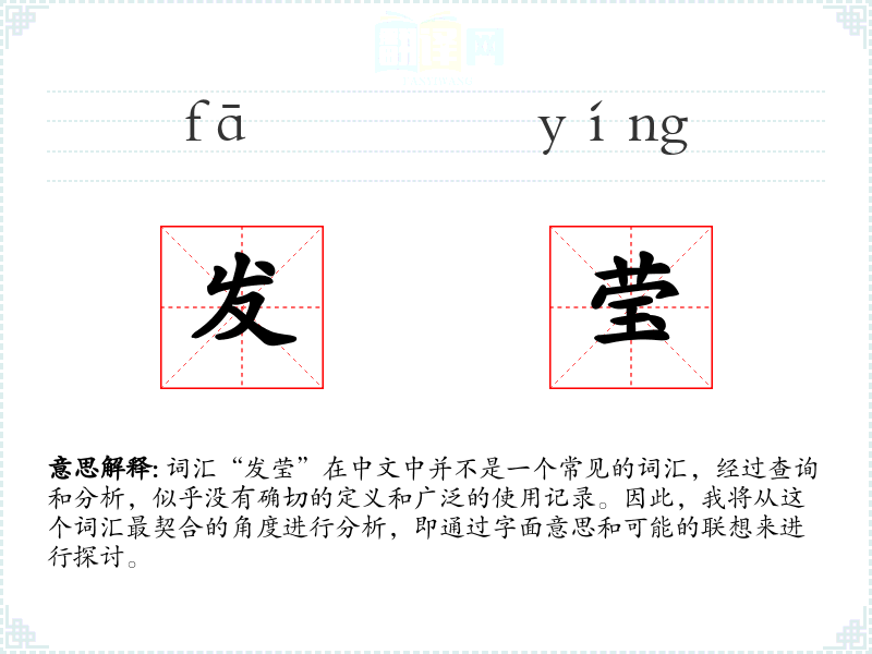 尽管“发莹”不是一个常用词汇,但它通过字面意思和可能的联想,给人一种美丽、清新、纯净的感觉。在语言学习和表达中,了解和掌握这样的词汇可以丰富我们的表达方式,使我们的语言更加生动和多彩。