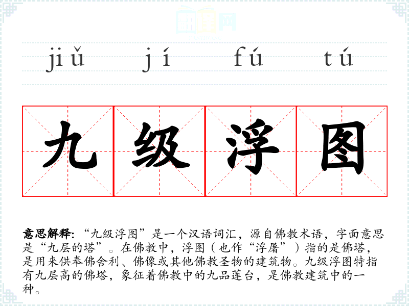 “九级浮图”一词源自梵文“stūpa”,经过古代汉语的音译和意译,形成了“浮图”或“浮屠”。随着在的传播,这个词汇逐渐被广泛使用,并形成了特定的文化内涵。