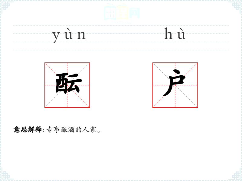 酝户的分字解释