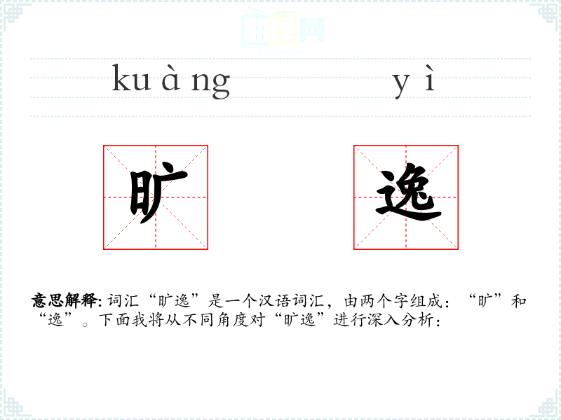 - 词源:“旷”和“逸”都是古代汉语词汇,历史悠久。