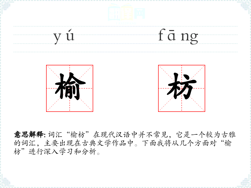 - 反义词:脆弱、易损(这些词汇与“榆枋”所代表的坚固、耐用特性相反)