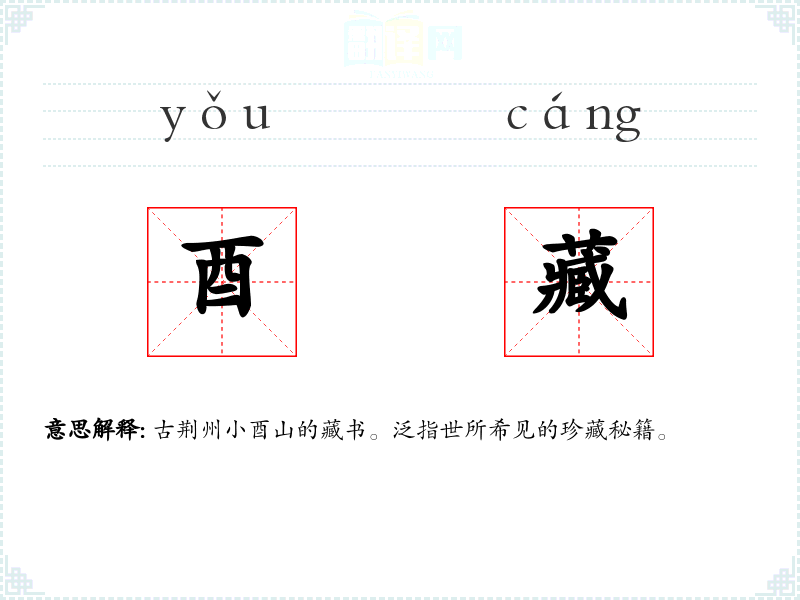 古荆州小酉山的藏书。泛指世所希见的珍藏秘籍。