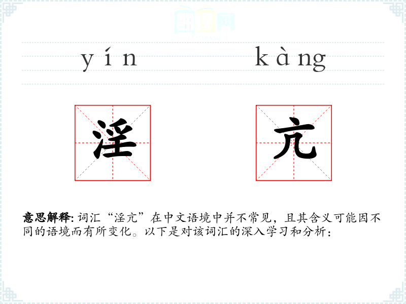 词汇“淫亢”在中文语境中并不常见,且其含义可能因不同的语境而有所变化。以下是对该词汇的深入学*和分析: