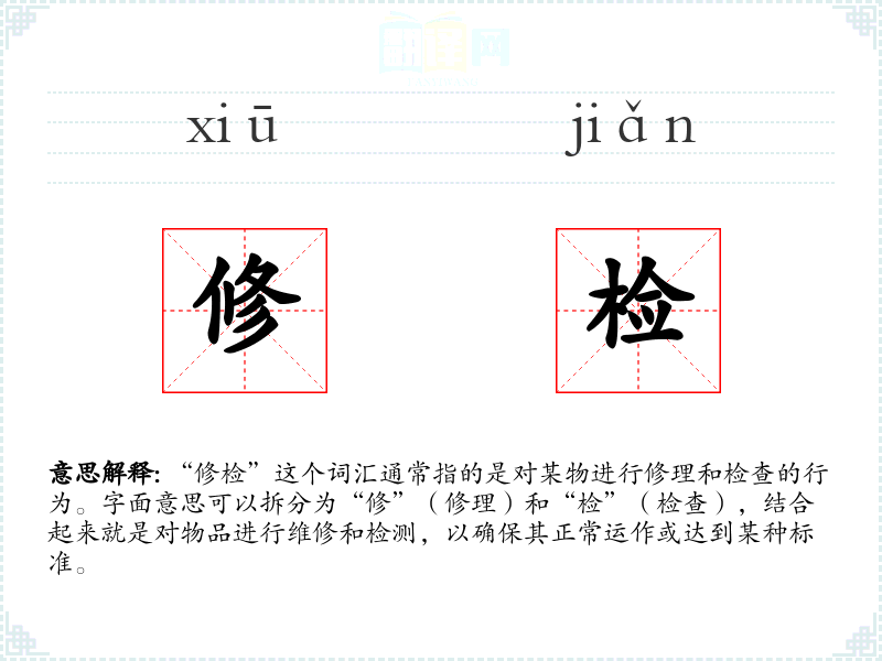 "修检"的意思解释、修检是什么意思由翻译网汉语词典查词提供。