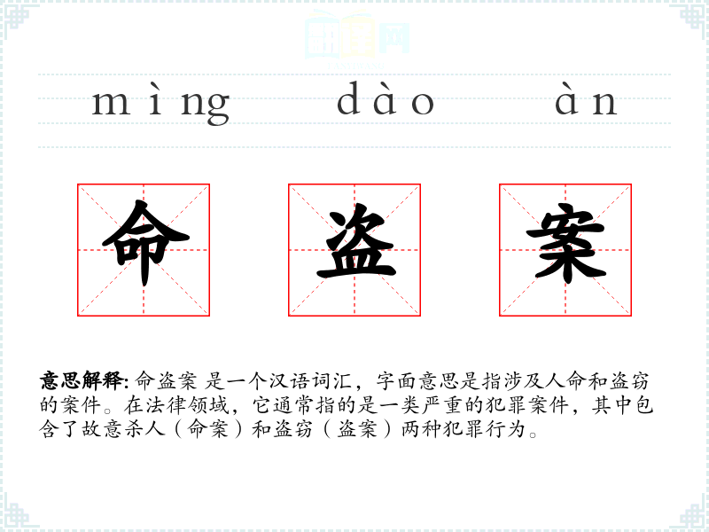命盗案 是一个在法律和文学中都有重要地位的词汇,它不仅描述了一类特定的犯罪行为,还反映了社会对生命和财产安全的重视。在语言学*和表达中,理解这类词汇的深层含义和使用场景是非常重要的。