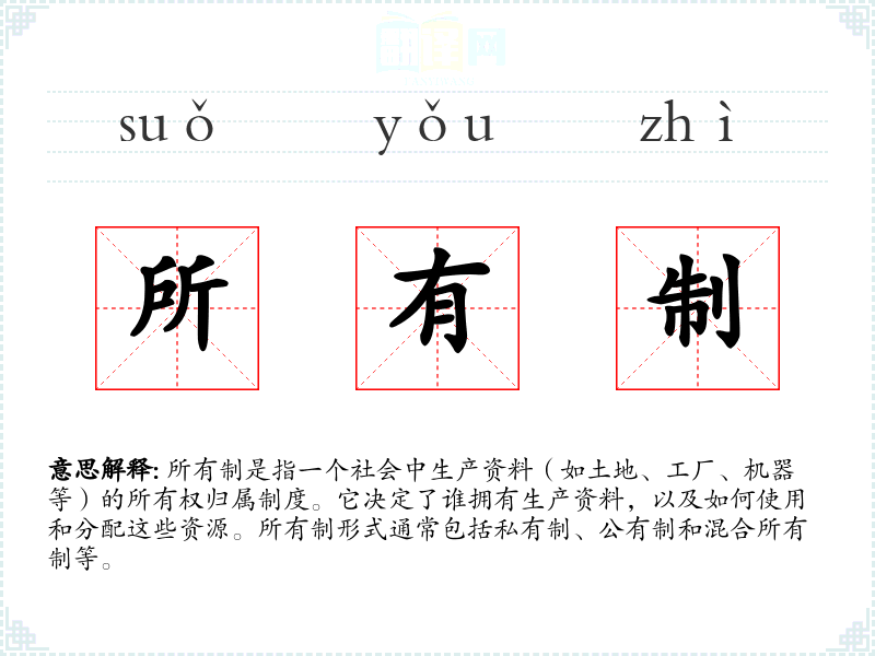 "所有制"的意思解释、所有制是什么意思由翻译网汉语词典查词提供。