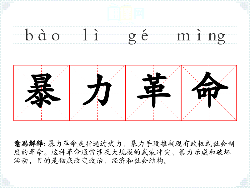 - 专业领域:在政治学、历史学和社会学中,“暴力革命”是一个重要的研究对象,用于分析社会变革的机制和后果。