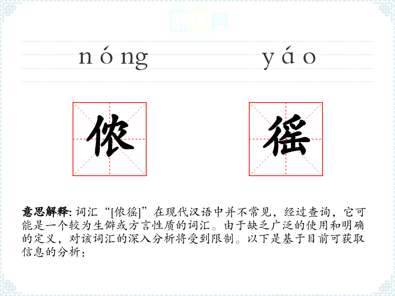 词汇“[侬徭]”在现代汉语中并不常见,经过查询,它可能是一个较为生僻或方言性质的词汇。由于缺乏广泛的使用和明确的定义,对该词汇的深入分析将受到限制。以下是基于目前可获取信息的分析:
