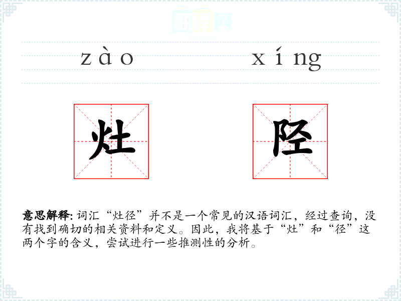词汇“灶径”并不是一个常见的汉语词汇,经过查询,没有找到确切的相关资料和定义。因此,我将基于“灶”和“径”这两个字的含义,尝试进行一些推测性的分析。