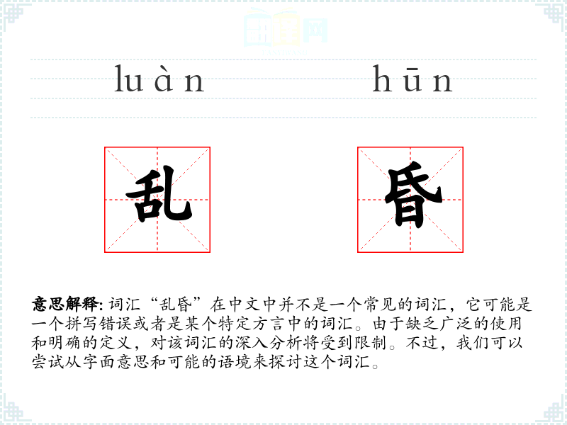 由于“乱昏”不是一个标准词汇,我们无法提供一个确切的定义。如果将其拆分为“乱”和“昏”两个字,我们可以分别解释:
