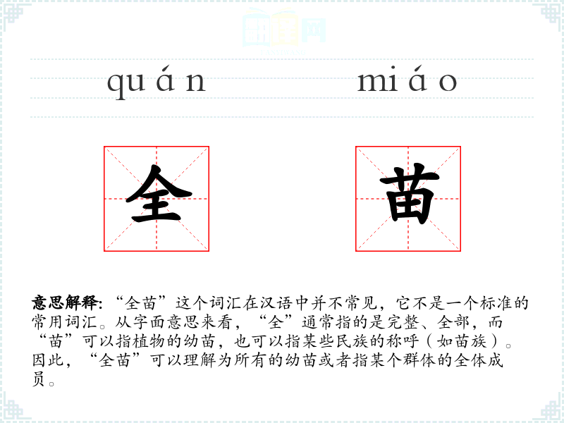 由于“全苗”不是一个常用词汇,它在不同语言或文化中的对应词汇及其使用情况不详。