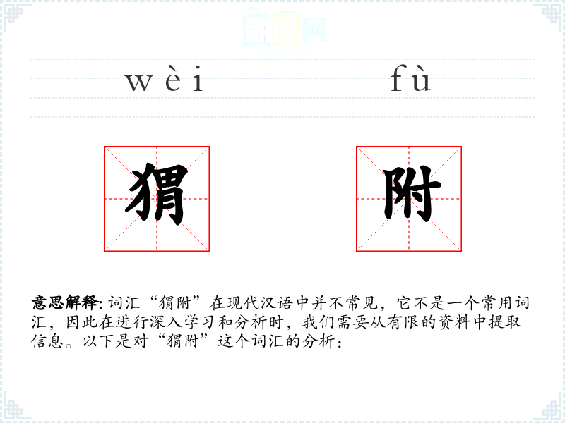 词汇“猬附”在现代汉语中并不常见,它不是一个常用词汇,因此在进行深入学习和分析时,我们需要从有限的资料中提取信息。以下是对“猬附”这个词汇的分析: