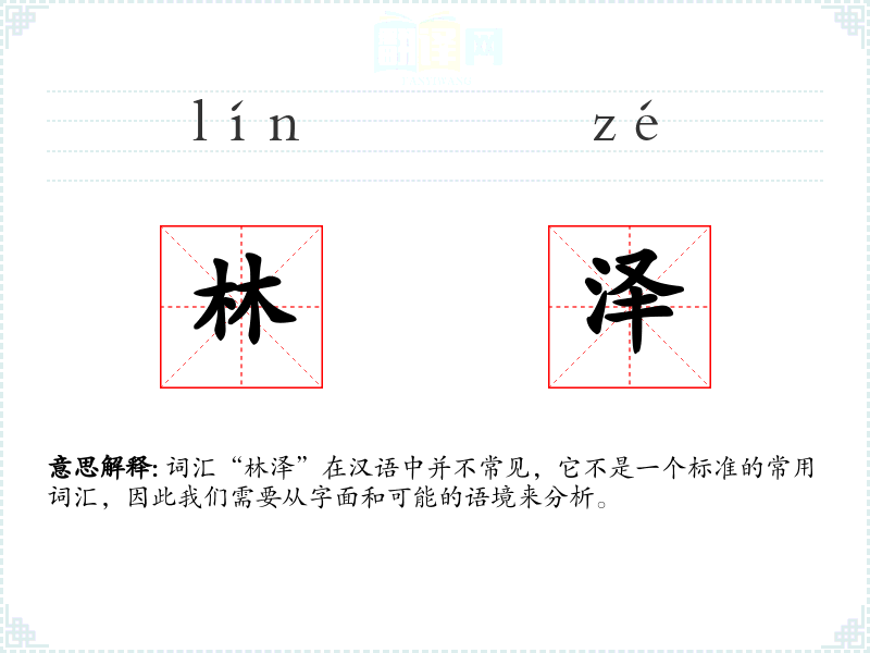 词汇“林泽”在汉语中并不常见,它不是一个标准的常用词汇,因此我们需要从字面和可能的语境来分析。