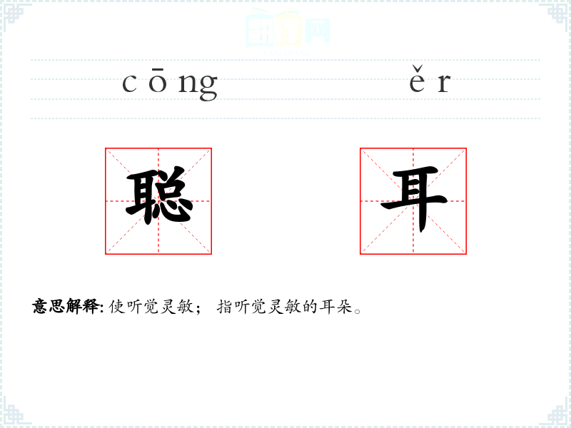 使听觉灵敏; 指听觉灵敏的耳朵。